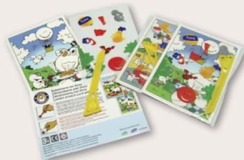 Educational and entertaining children's products including activity books, coloring pages, games, and interactive learning materials with vibrant colors and durable construction.